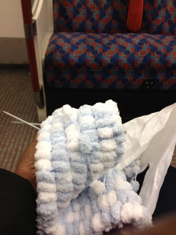 Yesterday it was my RICO pompon throw today it is a waste not want not day. I have a bit of Aran I am trying to make into a baby blanket and I am thinking so far so good. Another few hours of crochet should see it grow more